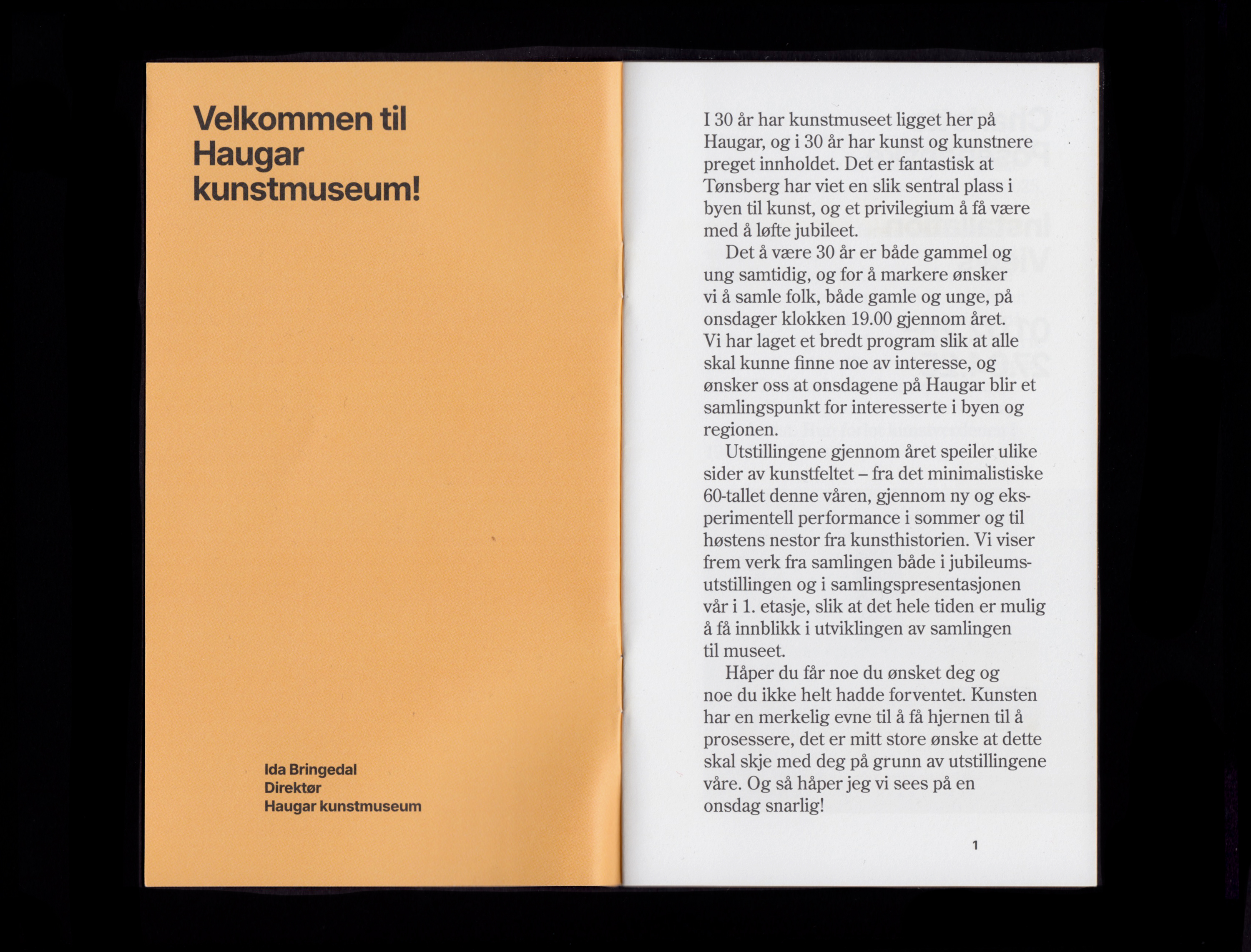 Seasonal program for Haugar Kunstmuseum’s 30th anniversary.