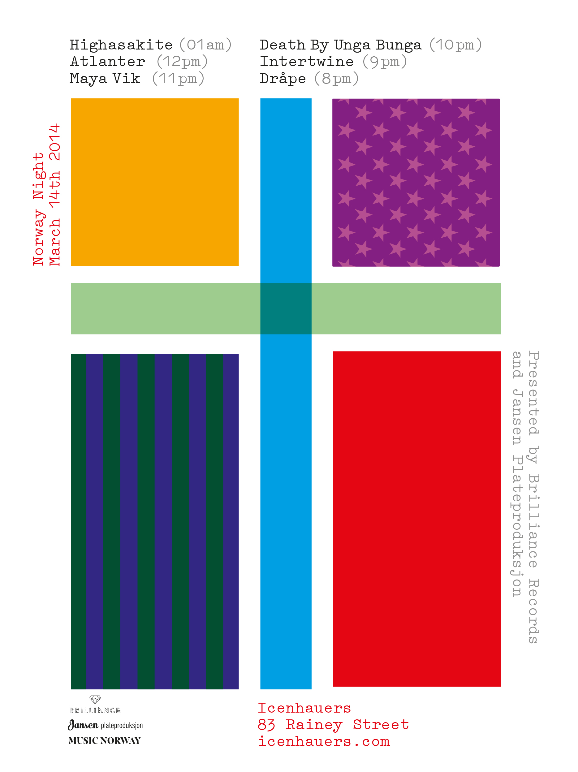 Concerts, films, festivals events, exhibitions.